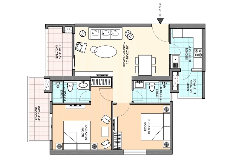 Spacious 2 & 3 BHK apartments designed for comfort and style.