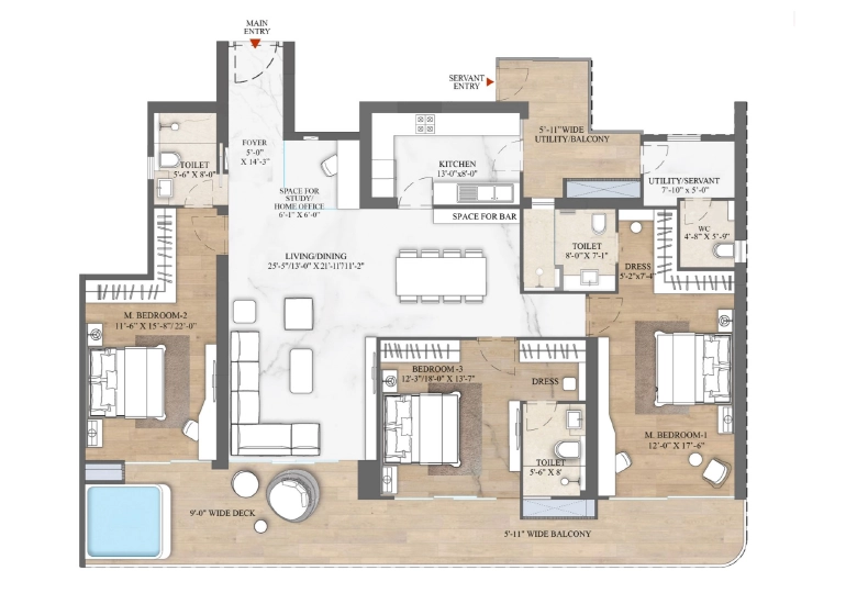 Spacious 4 & 5 BHK residences with premium interiors and private decks.